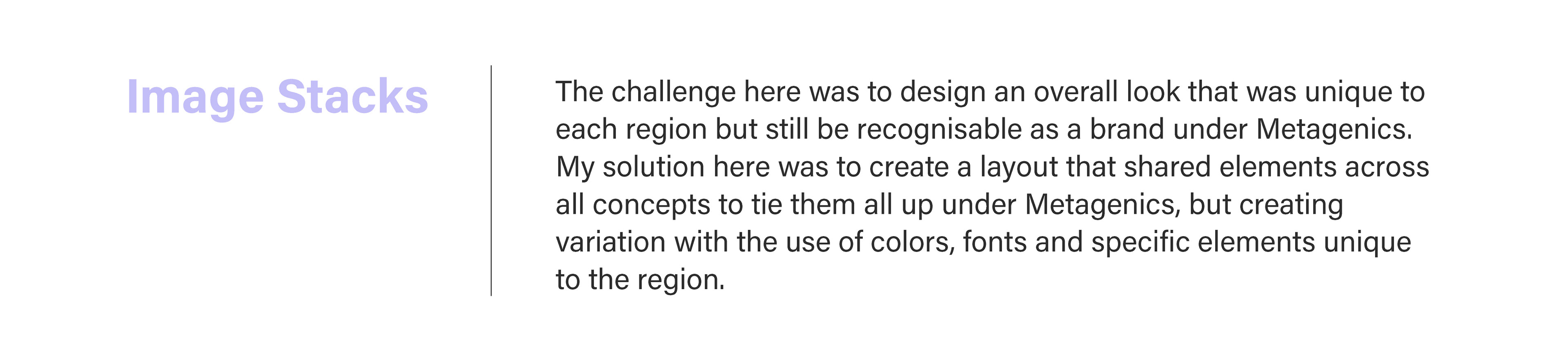 Metagenics is a supplemental brand that carries a various number of products specific to certain countries and conditions. One challenge that they faced was setting an overall brand identity that was coherent but still managed to tell apart products from the US, Italy, the UK and France.